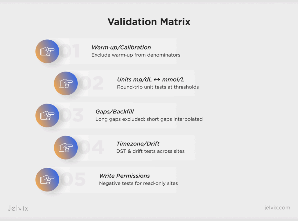 - Define canonical units (mmHg), timestamp policy (TZ/drift), and event taxonomy.